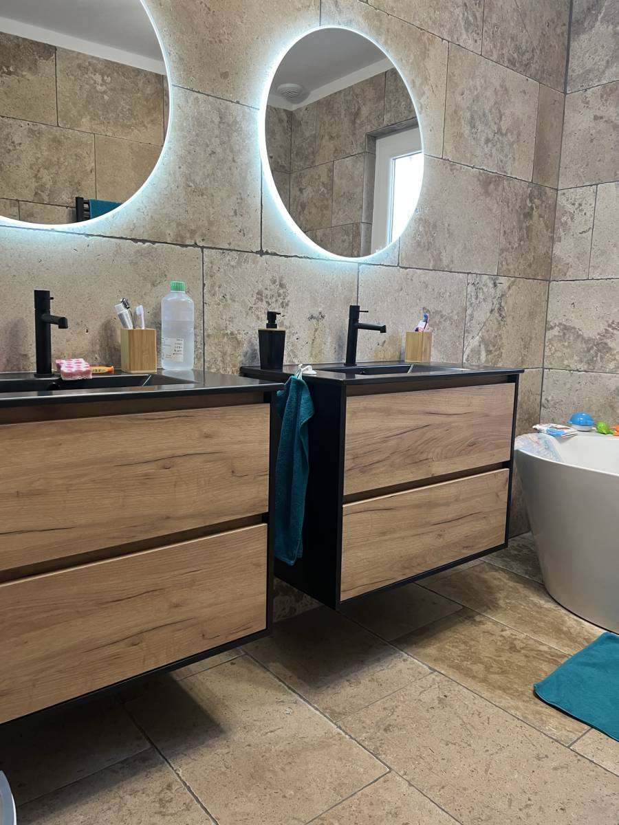 Notre marque vous présente la réalisation d’un client, Gaetano Carrelage qui a sublimé une salle de bain avec du travertin à La Garde dans le Var. Le travertin est une pierre naturelle au charme intemporel qui s’adapte parfaitement bien aux pièces humides telles que la salle de bain. Ce matériau offre plusieurs avantages tant sur le plan esthétique que pratique :