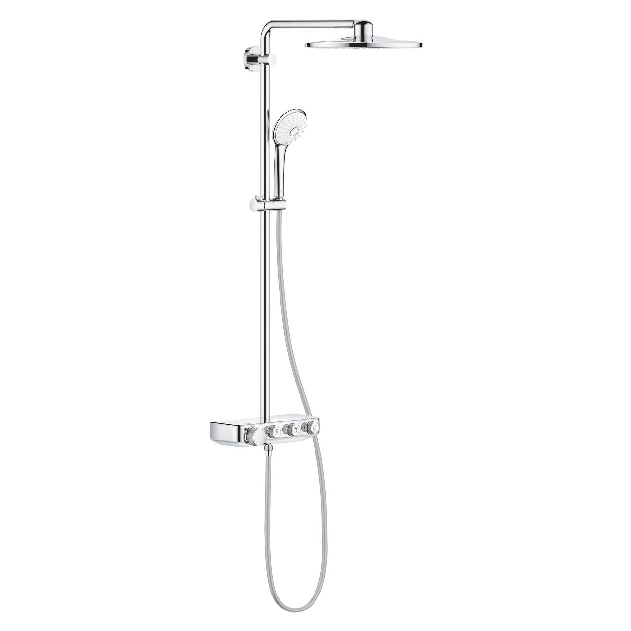 Expérience Carrelage, spécialiste de la vente de sanitaire et de robinetterie, vous présente la colonne de douche avec mitigeur thermostatique chromé, modèle Euphoria Smartcontrol 310 Duo de Grohe.